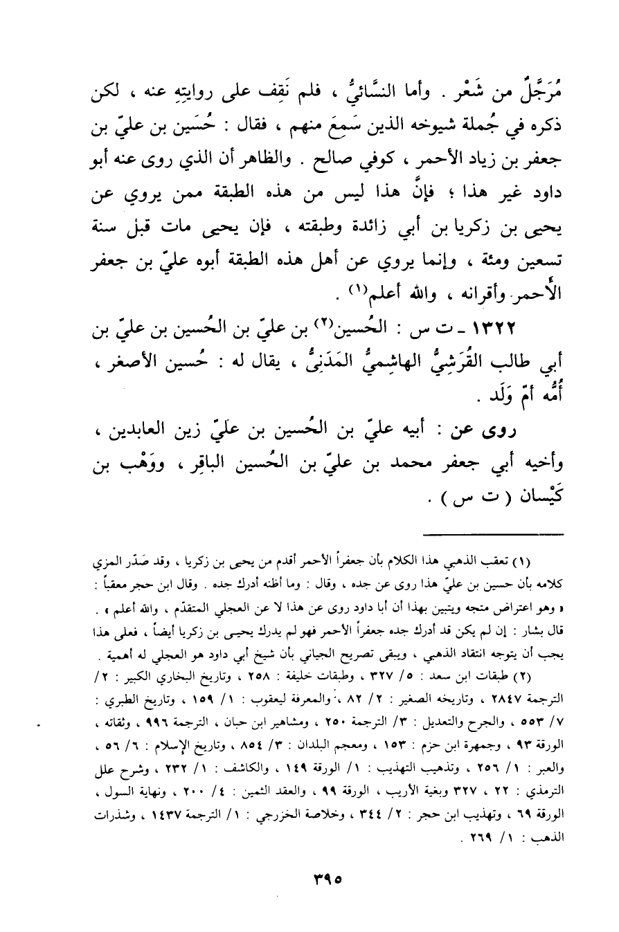 1322 - ت س: الحسين بن عَلِيّ بن الحسين بْن علي بْن أَبي طَالِب القرشي الهاشمي المدني (2) ، يقال له: حسين الأصغر، أمه أم ولد.