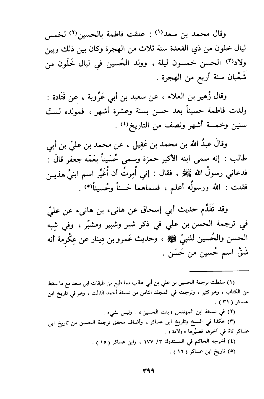 (1) سقطت تَرْجَمَةِ الْحُسَيْنِ بْنِ عَلِيِّ بْنِ أَبي طالب مما طبع من طبقات ابن سعد مع ما سقط من الكتاب، وهو كثير، وترجمته في المجلد الثامن من نسخة أحمد الثالث، وهو في تاريخ ابن عساكر (31) .