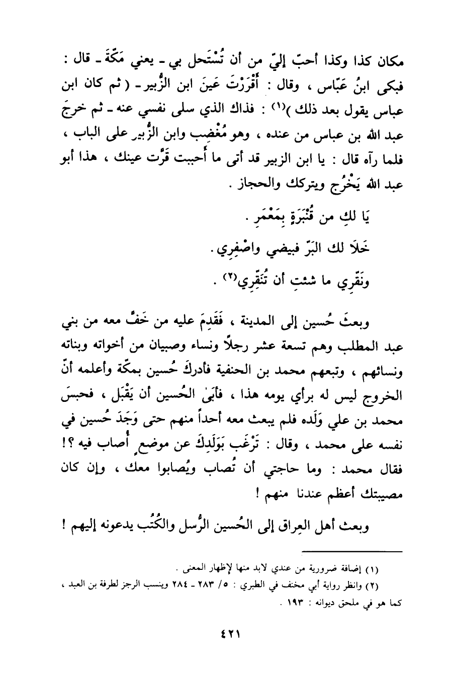 (2) وانظر رواية أبي مخنف في الطبري: 5 / 283 - 284 وينسب الرجز لطرفة بن العبد، كما هو في ملحق ديوانه: 193