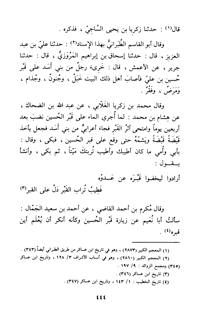 وَقَال مكرم بْن أَحْمَد القاضي، عن أَحْمَد بْن سَعِيد الجمال: سألت أبا نعيم عن زيارة قبر الحسين وكأنه أنكر أن يعلم أين قبره (4) .