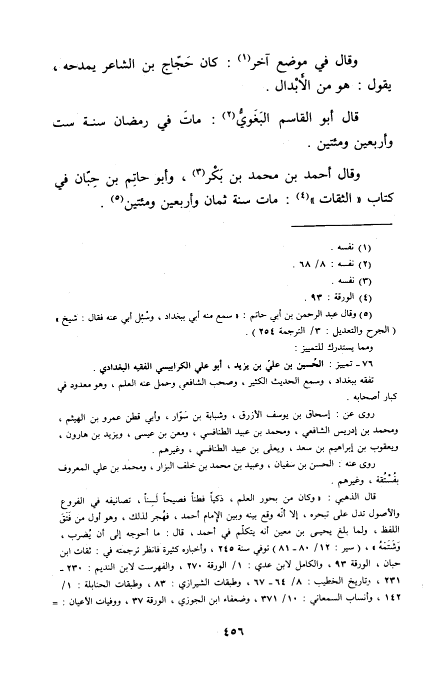 76 - تمييز: الحسين بن عَلِيّ بن يزيد، أبو علي الكرابيسي الفقيه البغدادي.
