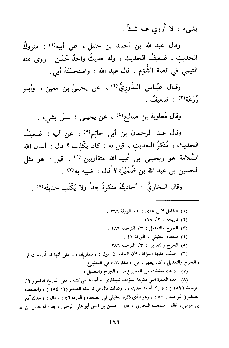 (1) الكامل لابن عدي: 1 / الورقة 266.