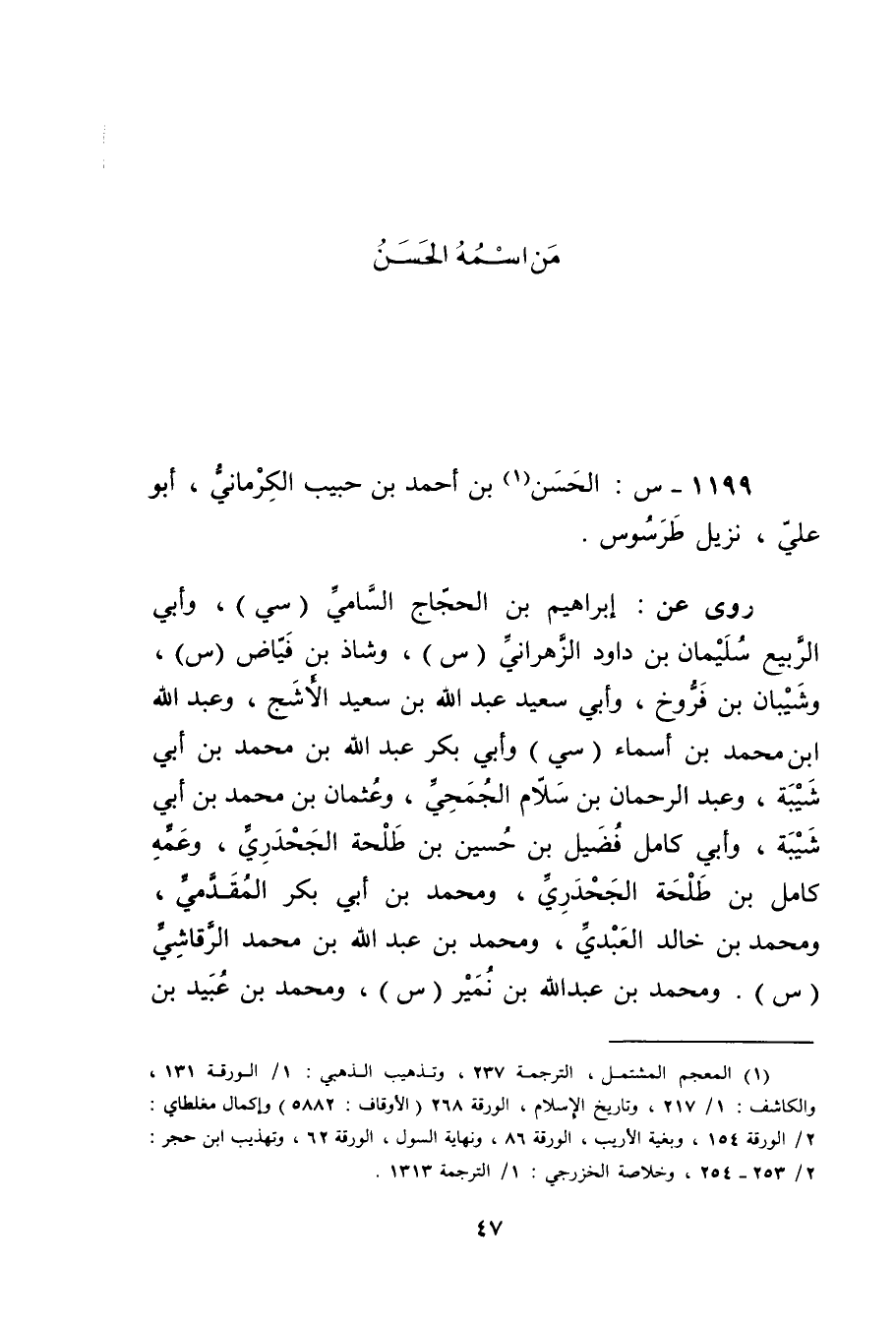 1199 - س: الْحَسَن بْن أحمد بْن حبيب الكرماني (1) ، أَبُو عَلِيّ، نزيل طرسوس.