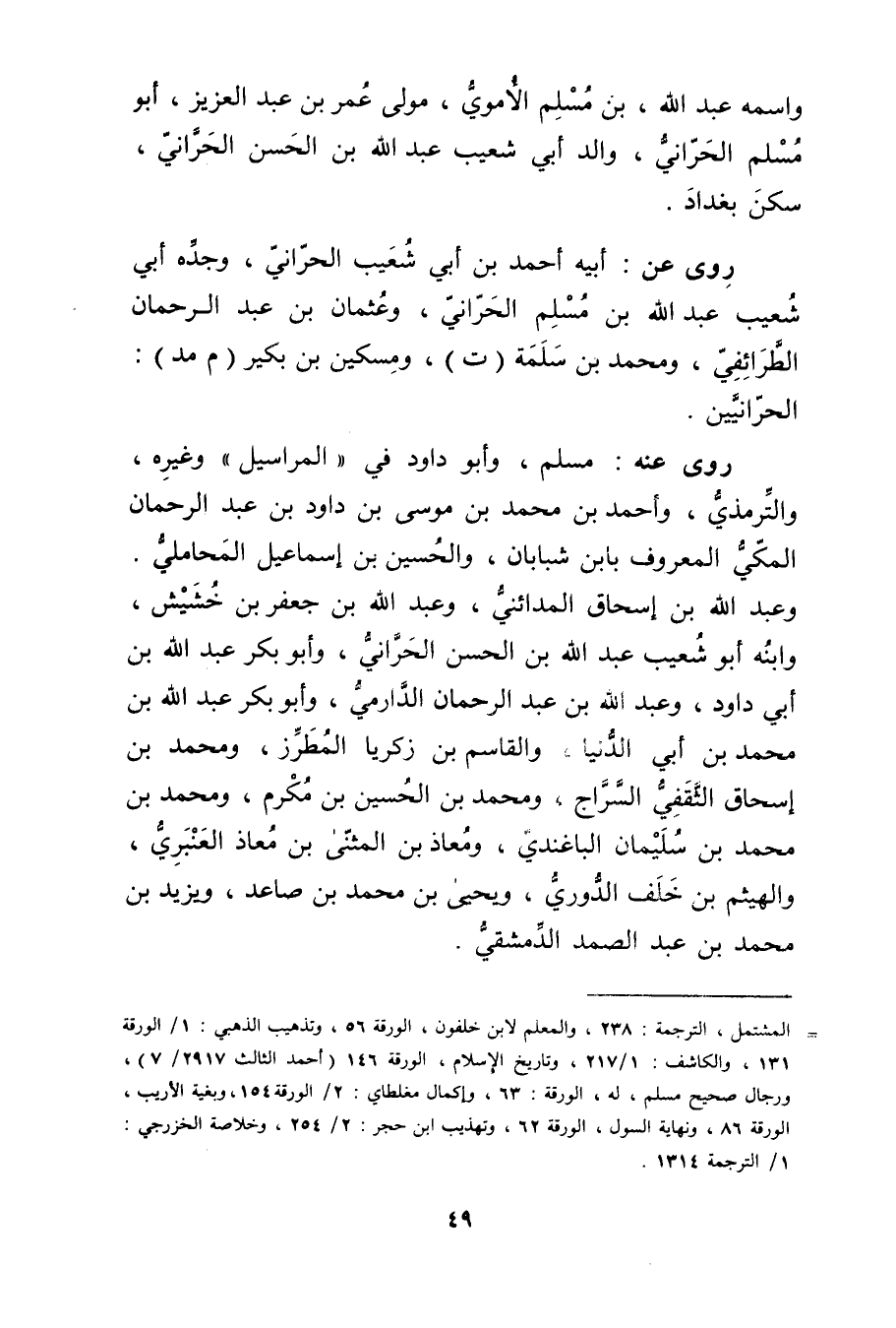 واسمه عَبد اللَّه، بْن مسلم الأُمَوِي، مولى عُمَر بْن عَبْد العزيز، أَبُو مسلم الحراني، والد أَبِي شعيب عَبد اللَّهِ بْن الْحَسَن الحراني، سكن بغداد.