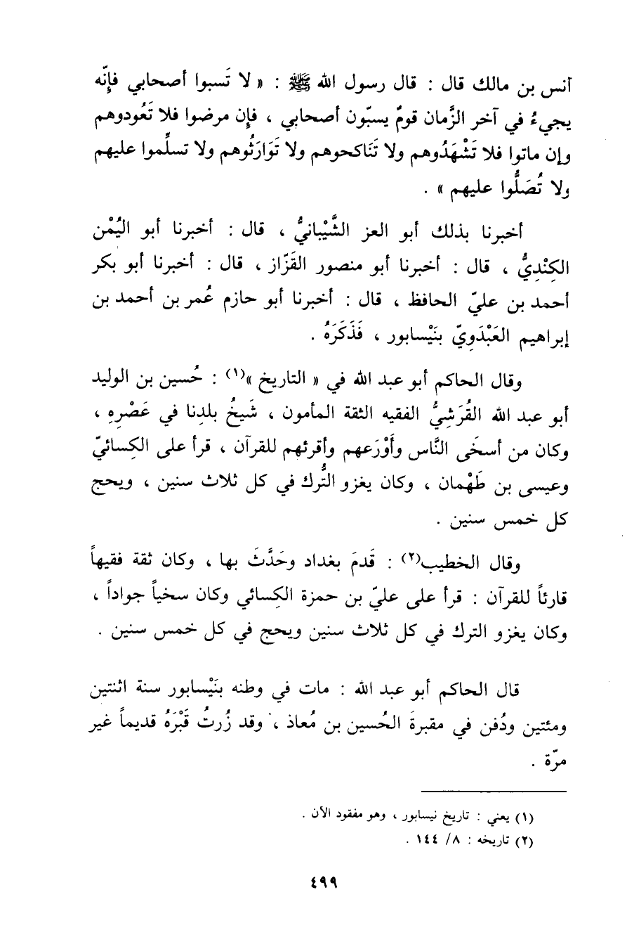 (1) يعني: تاريخ نيسابور، وهو مفقود الان.