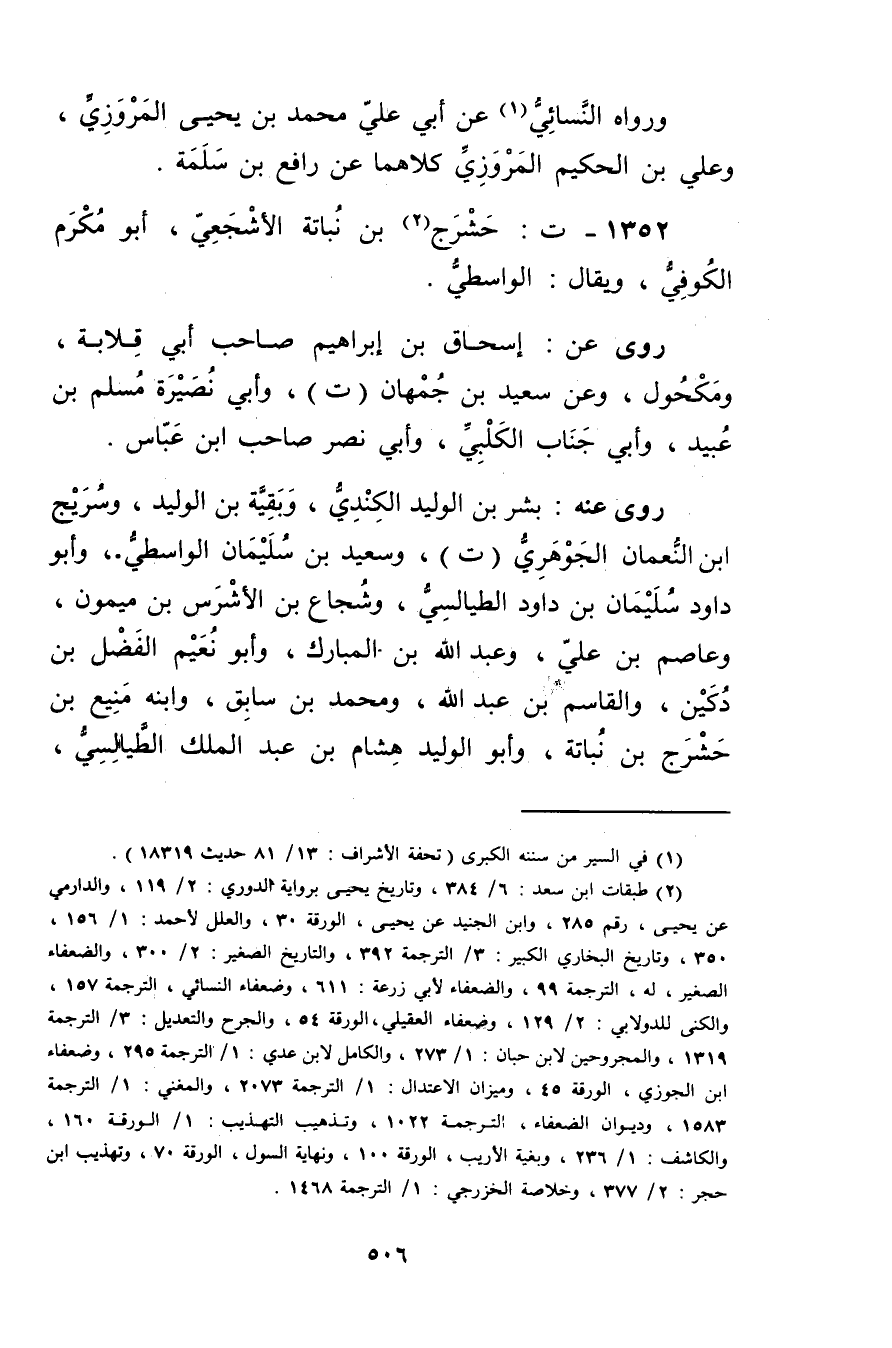1352 ت: حشرج بن نباتة الأشجعي (2) ، أَبُو مكرم الكوفي، ويُقال: الواسطي.