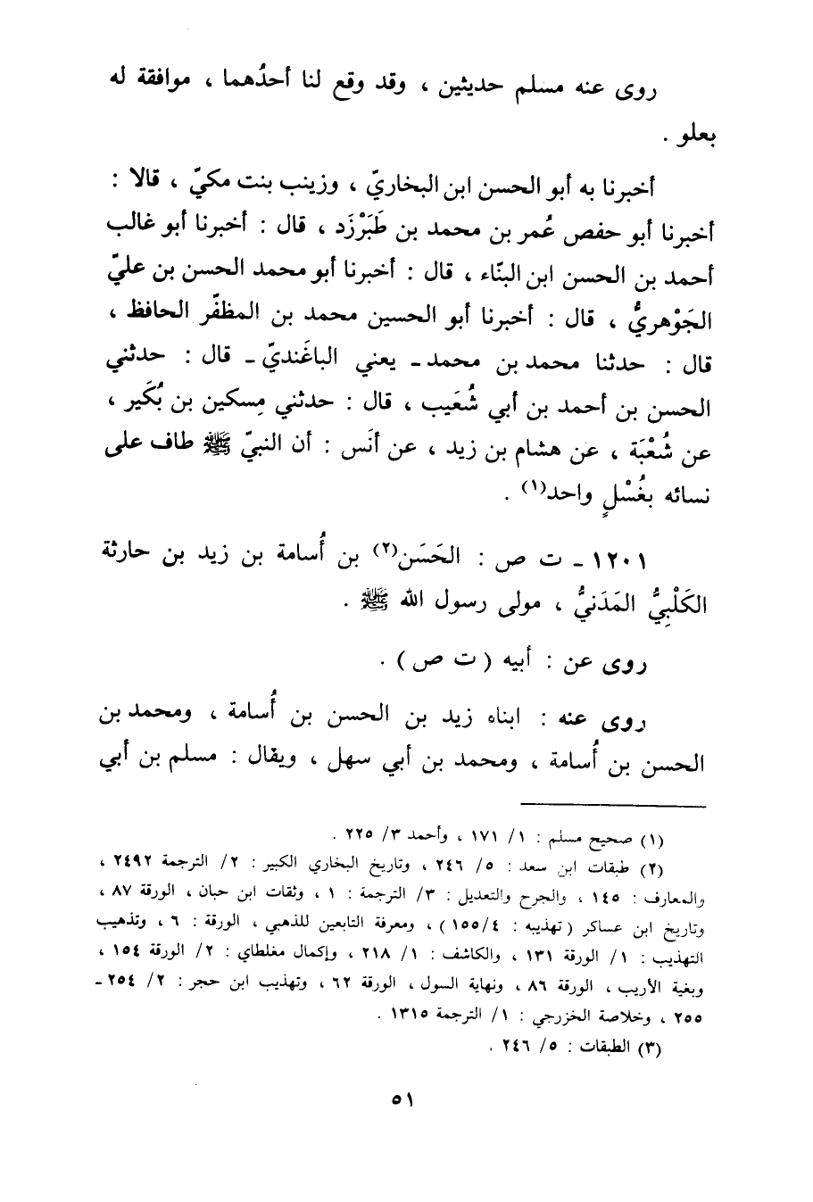 1201 - ت ص: الْحَسَن بن أسامة بن زيد بْن حارثة الكلبي المدني (2) ، مولى رَسُول اللَّهِ صَلَّى اللَّهُ عليه وسلم.