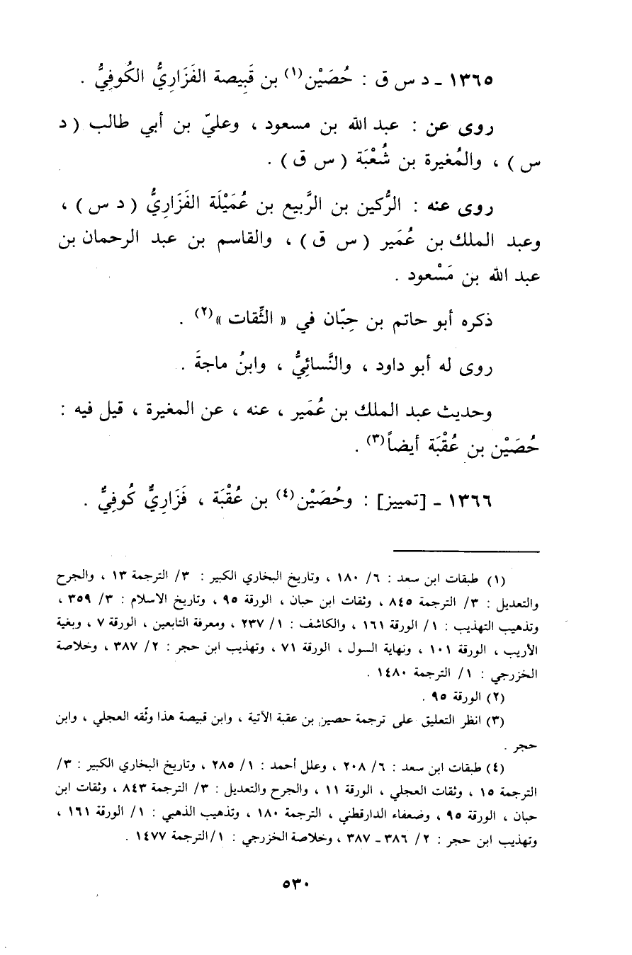 1365 د س ق: حصين بن قبيصة الفزاري الكوفي (1) .