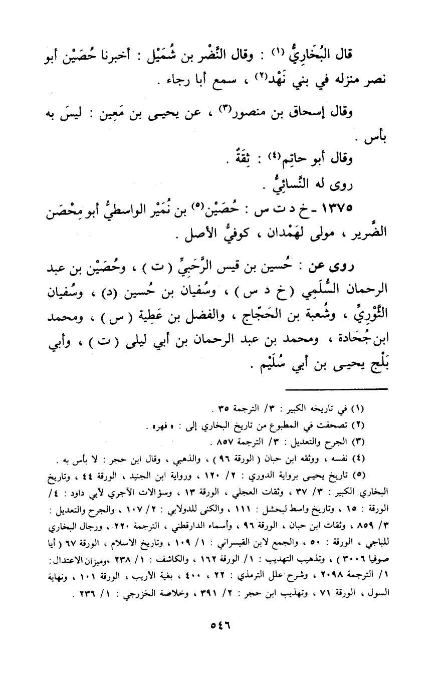 1375 - خ د ت س: حصين بن نمير الواسطي أَبُو محصن الضرير (5) ، مولى لهمدان، كوفي الأصل.