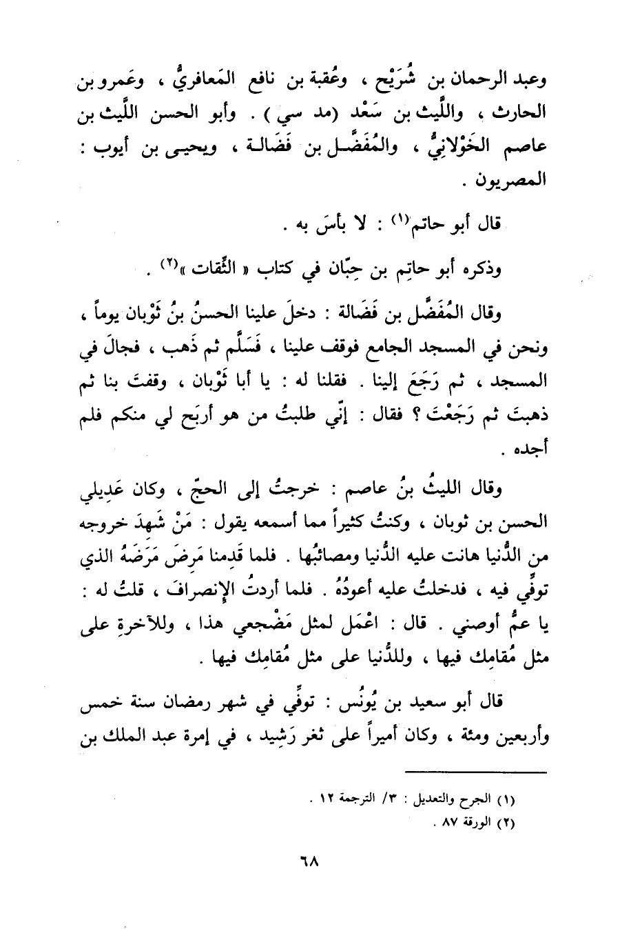 وذكره أَبُو حَاتِم بْن حبان فِي كتاب "الثقات" (2) .