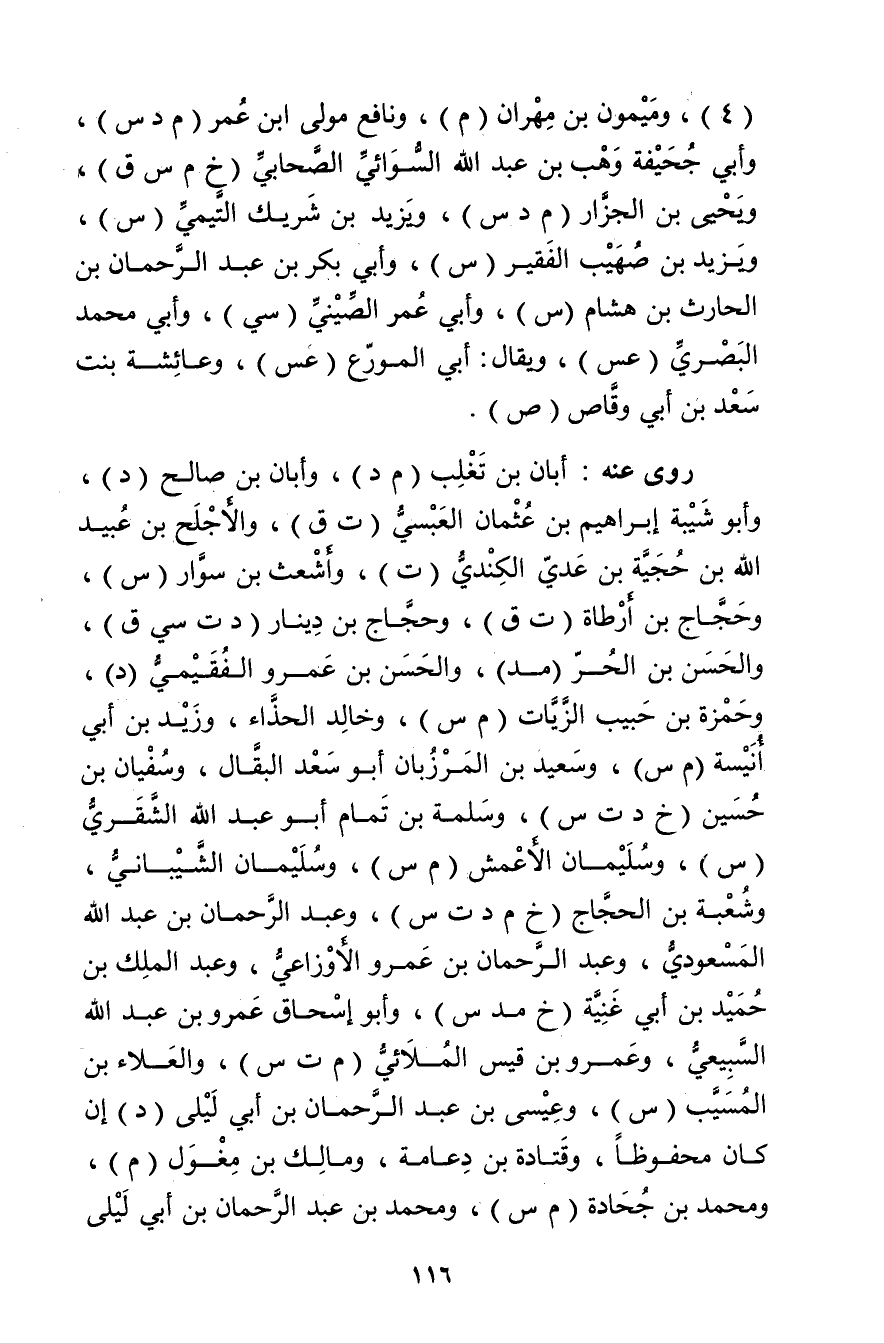 (4) ، وميمون بن مهران (م) ، ونافع مولى ابْن عُمَر (م د س) ، وأبي جحيفة وهب بن عَبد اللَّهِ السوائي الصحابي (خ م س ق) ، ويحيى بن الجزار (م د س) ، ويزيد بن شَرِيك التَّيْمِيّ (س) ، ويزيد بن صهيب الفقير (س) ، وأبي بكر بْن عَبْد الرحمن بْن الحارث بن هشام (س) ، وأبي عُمَر الصيني (سي) ، وأبي مُحَمَّد البَصْرِيّ (عس) ، ويُقال: أبي المورع (عس) ، وعائشة بنت سعد بن أَبي وقاص (ص) .