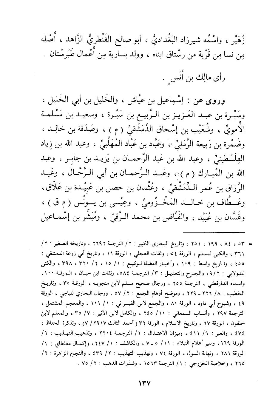 زهير، واسمه شيرزاد البغدادي، أَبُو صالح القنطري الزاهد، أصله من نسا من قرية من رستاق ابناه، وولد بسارية من أعمال طبرستان.