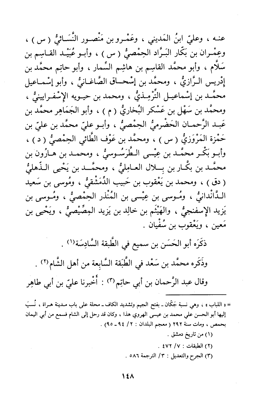 ="اللباب"، وهي نسبة جكان - بفتح الجيم وتشديد الكاف - محلة على باب مدينة هراة، نسب إليها أبو الحسن علي محمد بن عيسى الهروي هذا، وكان قد رحل إلى الشام فسمع من أبي اليمان بحمص، ومات سنة 296 (معجم البلدان: 2 / 94 - 95) .