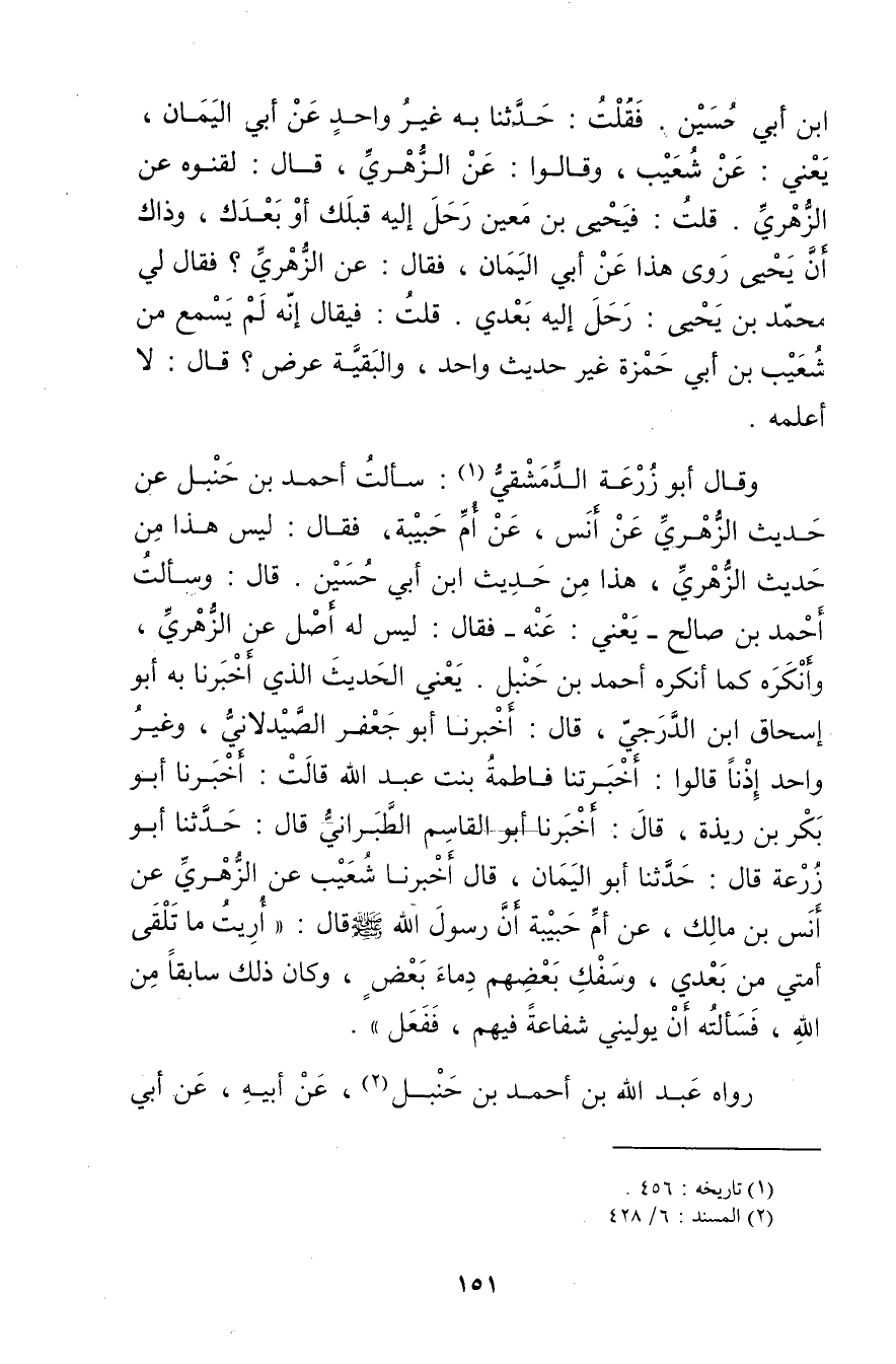 رَوَاهُ عَبد اللَّهِ بْنُ أَحْمَدَ بْن حنبل (2) ، عَن أبيه، عَن أبي