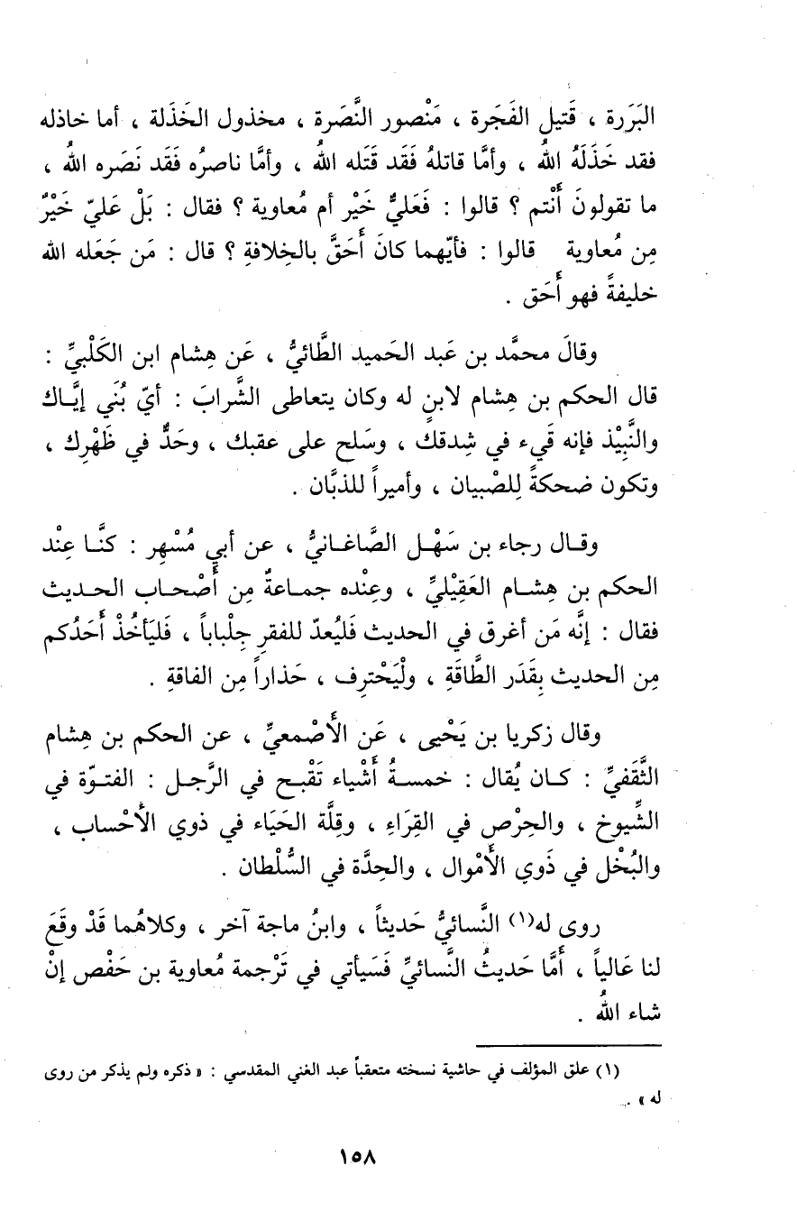 (1) علق المؤلف في حاشيه نسخته متعقبا عبد الغني المقدسي: ذكره ولم يذكر من روى له".