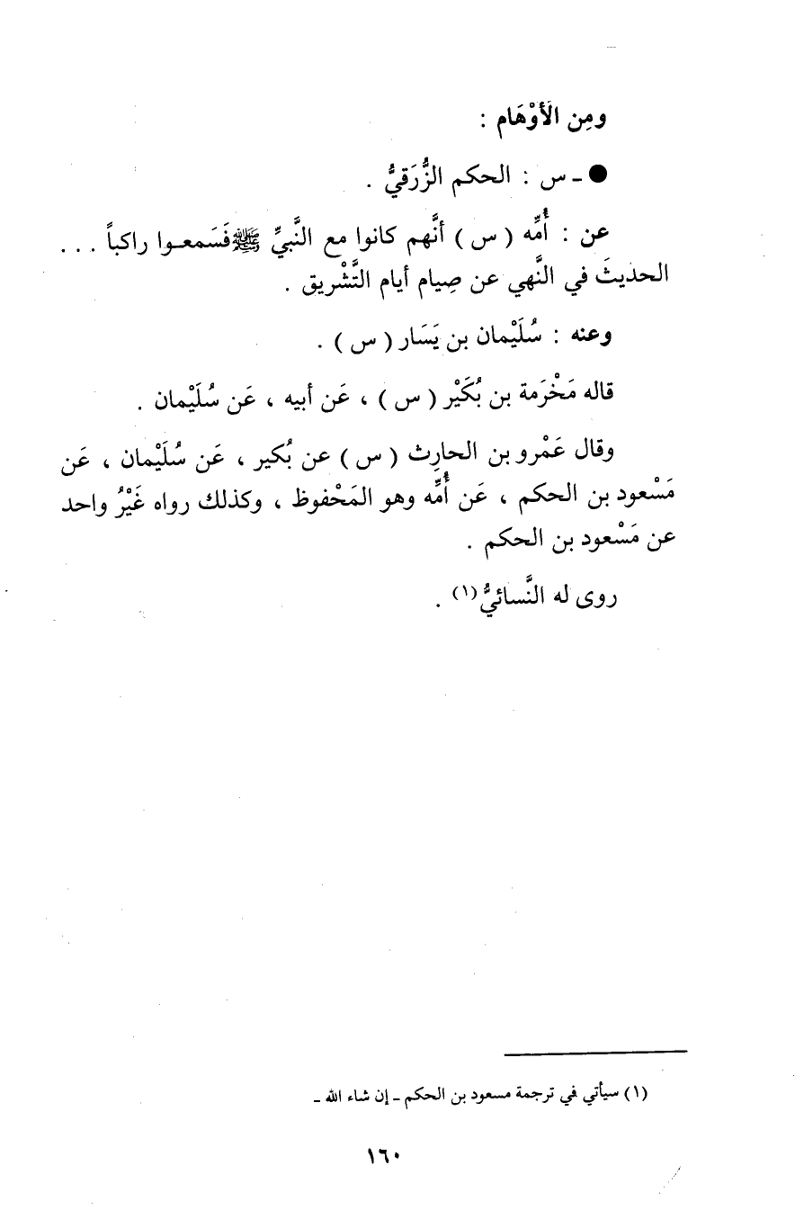 وَقَال عَمْرو بن الحارث (س) ، عن بكير، عن سُلَيْمان، عن مسعود بن الحكم، عن أُمِّه وهو المحفوظ، وكذلك رَوَاهُ غير واحد عن مسعود بن الحكم.