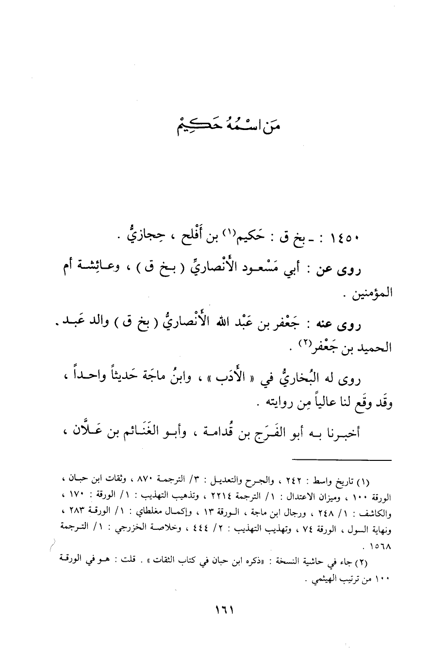 1450: - بخ ق: حكيم بن أفلح (1) ، حجازي.