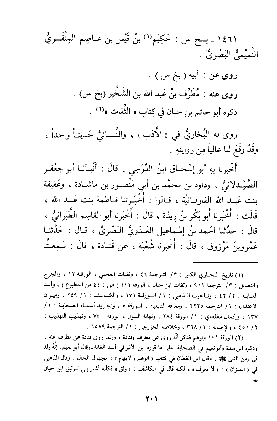 1461 - بخ س: حكيم بن قيس بن عاصم المنقري التميمي البَصْرِيّ (1) .