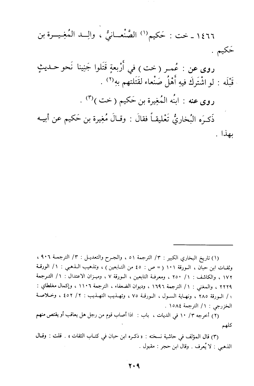 1466 - خت: حكيم الصنعاني (1) ، والد المغيرة بن حكيم.