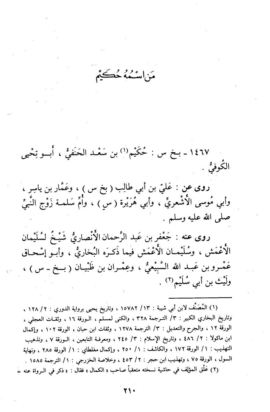 1467 - بخ س: حكيم بن سعد الحنفي (1) ، أبوتحيى الكوفي.