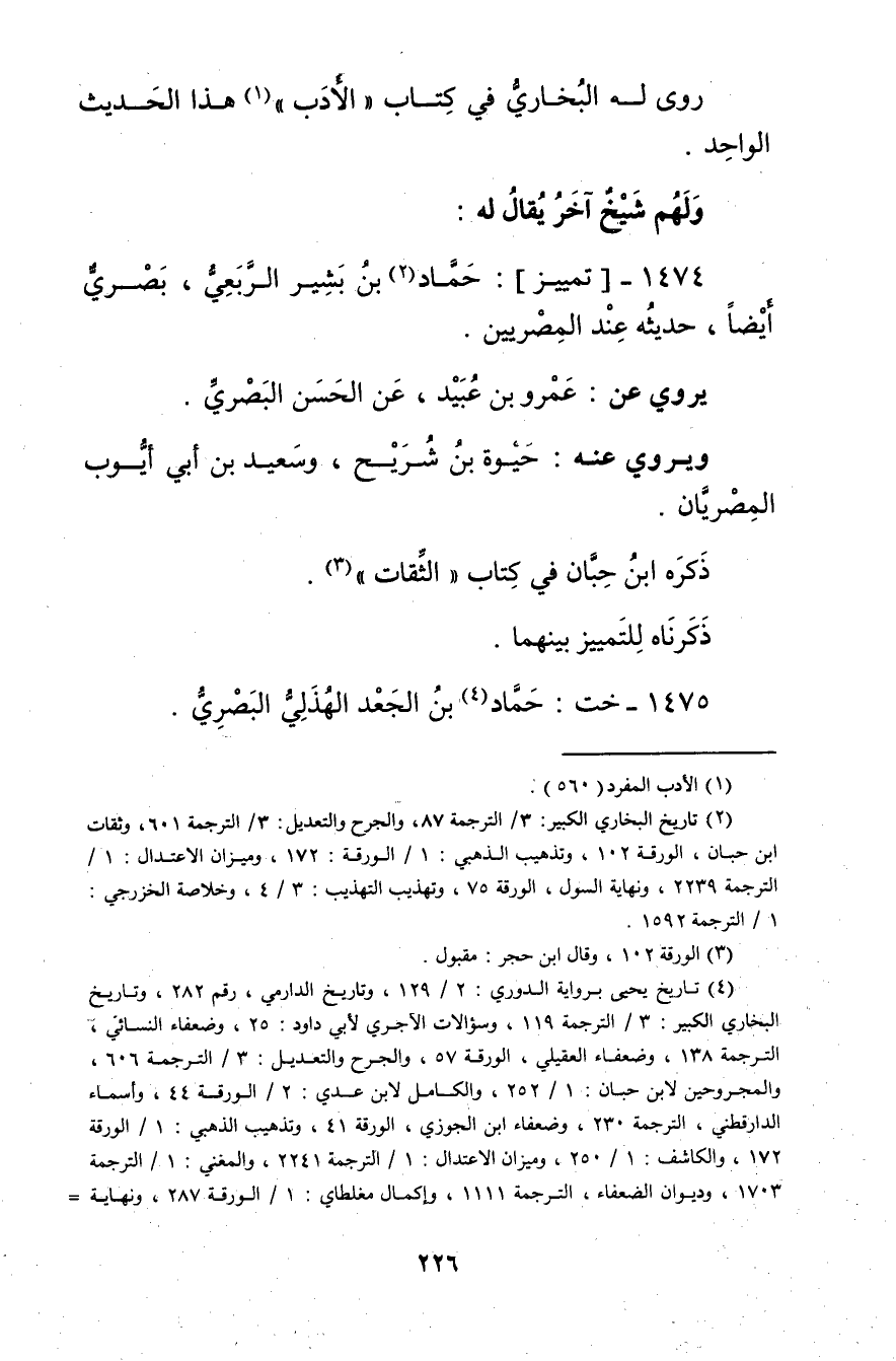 1475 - خت: حماد بن الجعد الهذلي البَصْرِيّ (4) .