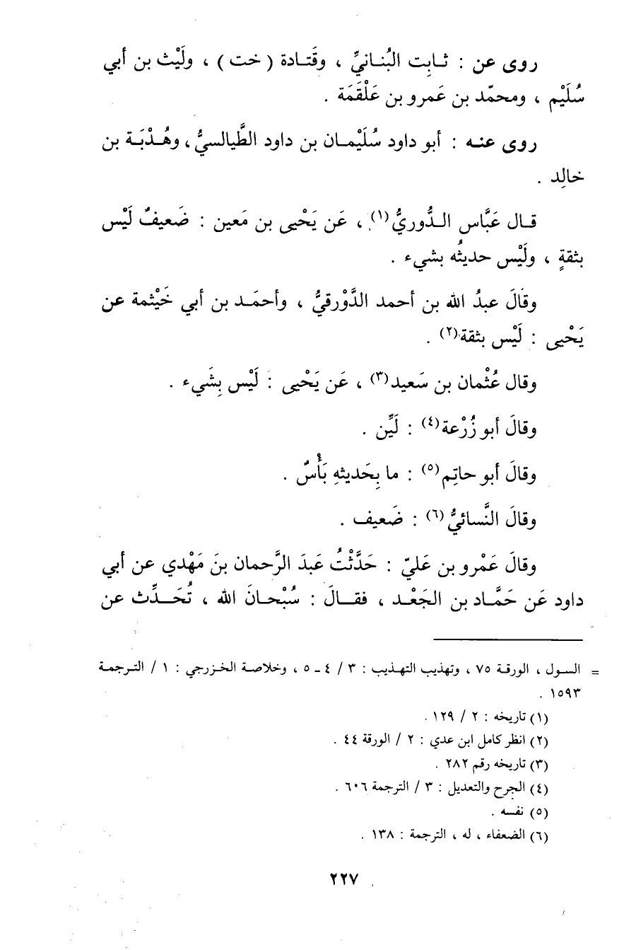 وَقَال عثمان بْن سَعِيد (3) ، عَنْ يحيى: ليس بشيءٍ.