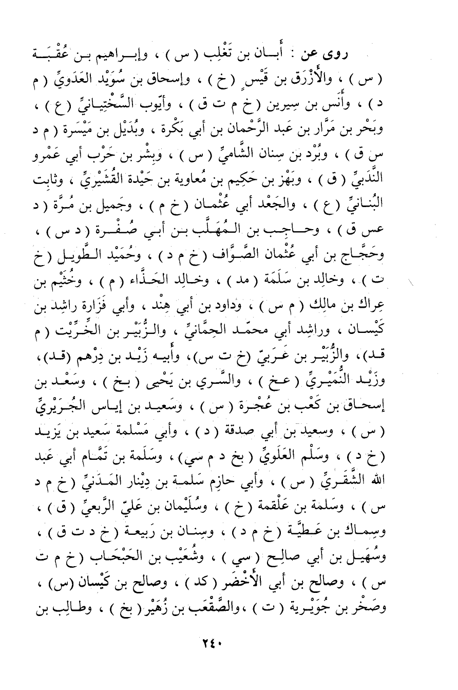 رَوَى عَن: أبان بن تغلب (س) ، وإبراهيم بن عقبة (س) ، والأزرق بن قيس (خ) ، وإسحاق بن سويد العدوي (م د) ، وأنس بن سيرين (خ م ت ق) ، وأيوب السختياني (ع) ، وبحر بن مرار بْن عَبْد الرَّحْمَنِ بْن أَبي بكرة، وبديل بن ميسرة (م د س ق) ، وبرد بن سنان الشامي (س) ، وبشر بن حرب أبي عَمْرو الندبي (ق) ، وبهز بن حكيم بن معاوية بن حيدة القشيري، وثابت البناني (ع) ، والجعد أبي عثمان (خ م) ، وجميل بن مرة (د عس ق) ، وحاجب بن المهلب بن أَبي صفرة (د س) ، وحجاج بْن أَبي عثمان الصواف (خ م د) ، وحميد الطويل (خ ت) ، وخالد بن سلمة (مد) ، وخالد الحذاء (م) ، وخيثم بْن عراك بْن مَالِك (م س) ، وداود بن هند، وأبي فزارة راشد بن كيسان، وراشد أبي مُحَمَّد الحماني، والزبير بن الخريب (م قد) ، والزبير بن عربي (خ ت س) ، وأبيه زيد بن درهم (قد) ، وزيد النميري (عخ) ، والسري بن يحيى (بخ) ، وسعد بْن إسحاق بْن كعب عجرة (س) ، وسَعِيد بن إياس الجريري (س) ، وسَعِيد بن أَبي صدقة (د) ، وأبي مسلمة سَعِيد بن يزيد (خ د) ، وسلم العلوي (بخ د م سي) ، وسلمة بن تمام أبي عَبْد اللَّهِ الشقري (س) ، وأبي حازم سلمة بْن دينار المدني (خ م د س) ، وسلمة بْن علقمة (خ) ، وسُلَيْمان بن علي الربعي (ق) ، وسماك بن عطية (خ م د) ، وسنان بن ربيعة (خ د ت ق) ، وسهيل بن أَبي صالح (سي) ، وشعيب بن الحبحاب (خ م ت س) ، وصالح بن أَبي الأخضر (كد) ، وصالح بن كيسان (س) ، وصخر بْن جويرية (ت) ، والصقعب بن زهير (بخ) ، وطالب بن