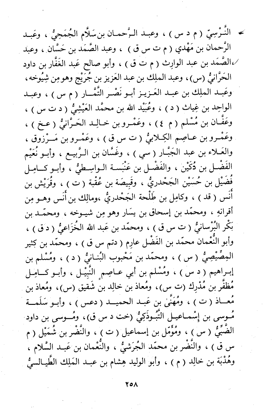 النرسي (م د س) ، وعبد الرحمن بْن سلام الجمحي، وعبد الرحمن بْن مهدي (م ت س ق) ، وعبد الصمد بْن حسان، وعبد الصمد بن عبد الوارث (م ت ق) ، وأَبُو صَالِح عبد الغفار بْن داود الحراني (س) ، وعبد الملك بن عبد العزيز بن جربج وهو من شيوخه، وعبد الملك بن عبد العزيز أَبُو نصر التمار (م س) ، وعبد الواحد بن غياث (د) ، وعُبَيد الله بن مُحَمَّد العيشي (د ت س) ، وعفان بن مسلم (م 4) ، وعَمْرو بن خالد الحراني (عخ) ، وعَمْرو بْن عاصم الكِلابي (ت س ق) ، وعَمْرو بن مرزوق، والعلاء بن عبد الجبار (سي) ، وغسان بْن الربيع، وأبو نعيم الفضل بْن دكين، والفضل بْن عنبسة الواسطي، وأَبُو كامل فضيل بن حسين الجحدري، وقبيصة بن عقبة (ت) ، وقريش بن أنس (قد) ، وكامل بن طلحة الجحدري، ومالك بن أنس وهو من أقرانه، ومحمد بْن إِسْحَاقَ بْن يسار وهو من شيوخه، ومُحَمَّد بن بكر البرساني (ت س ق) ، ومحمد بْن عَبد اللَّهِ الخزاعي (د ق) ، وأَبُو النعمان محمد بن الفضل عارم (دتم س ق) ، ومُحَمَّد بن كثير المصيصي (س) ، ومُحَمَّد بن محبوب البناني (د) ، ومسلم بن إبراهيم (د س) ، ومسلم بن أَبي عاصم النَّبِيّل، وأَبُو كامل مظفر بن مدرك (ت س) ، ومعاذ بن خالد بن شقيق (س) ، ومعاذ بن معاذ (ت) ، ومهنى بن عبد الحميد (دعس) ، وأَبُو سلمة موسى بن إسماعيل التبوذكي (خت د س ق) ، وموسى بن داود الضبي (س) ، ومؤمل بن إسماعيل (ت) ، والنضر بن شميل (م س ق) ، والنضر بن مُحَمَّد الجرشي، والنعمان بن عبد السلام، وهدبة بن خالد (م) ، وأَبُو الوليد هشام بْن عَبد المَلِك الطيالسي