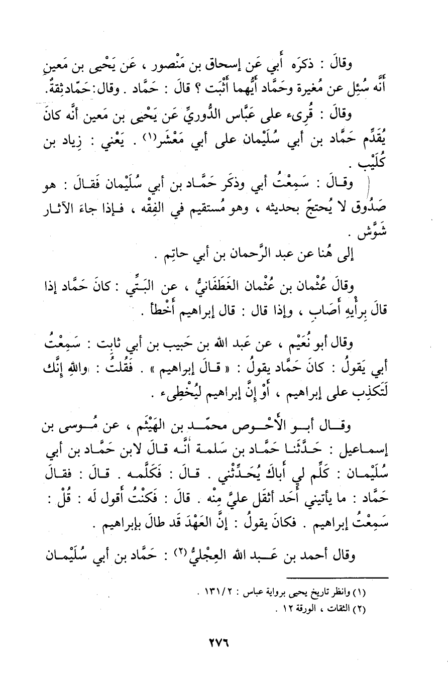وَقَال أَحْمَد بن عَبد اللَّهِ العجلي (2) : حماد بن أَبي سُلَيْمان