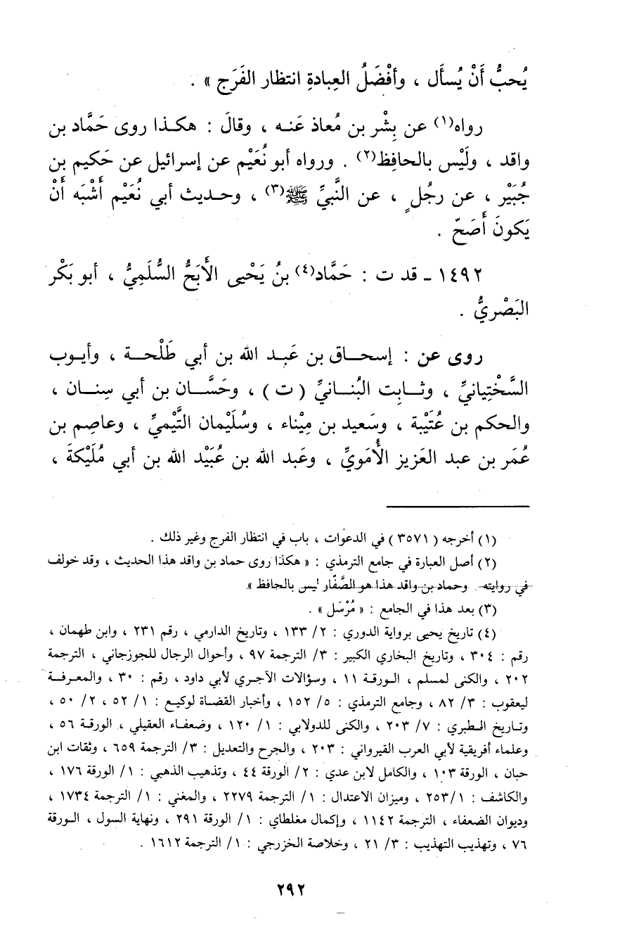 (2) أصل العبارة في جامع التِّرْمِذِيّ: هَكَذَا روى حَمَّادُ بْنُ واقِدٍ هذا الحديث، وقد خولف في روايته. وحماد بن واقد هذا هو الصفار ليس بالحافظ"