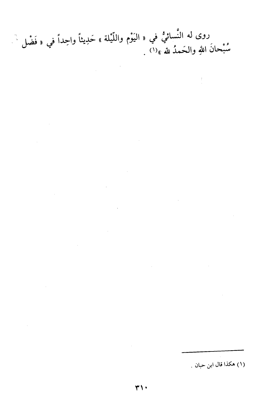 روى له النَّسَائي في "اليوم والليلة"حديثا واحدا في "فضل سبحان الله والحمد الله" (1) .