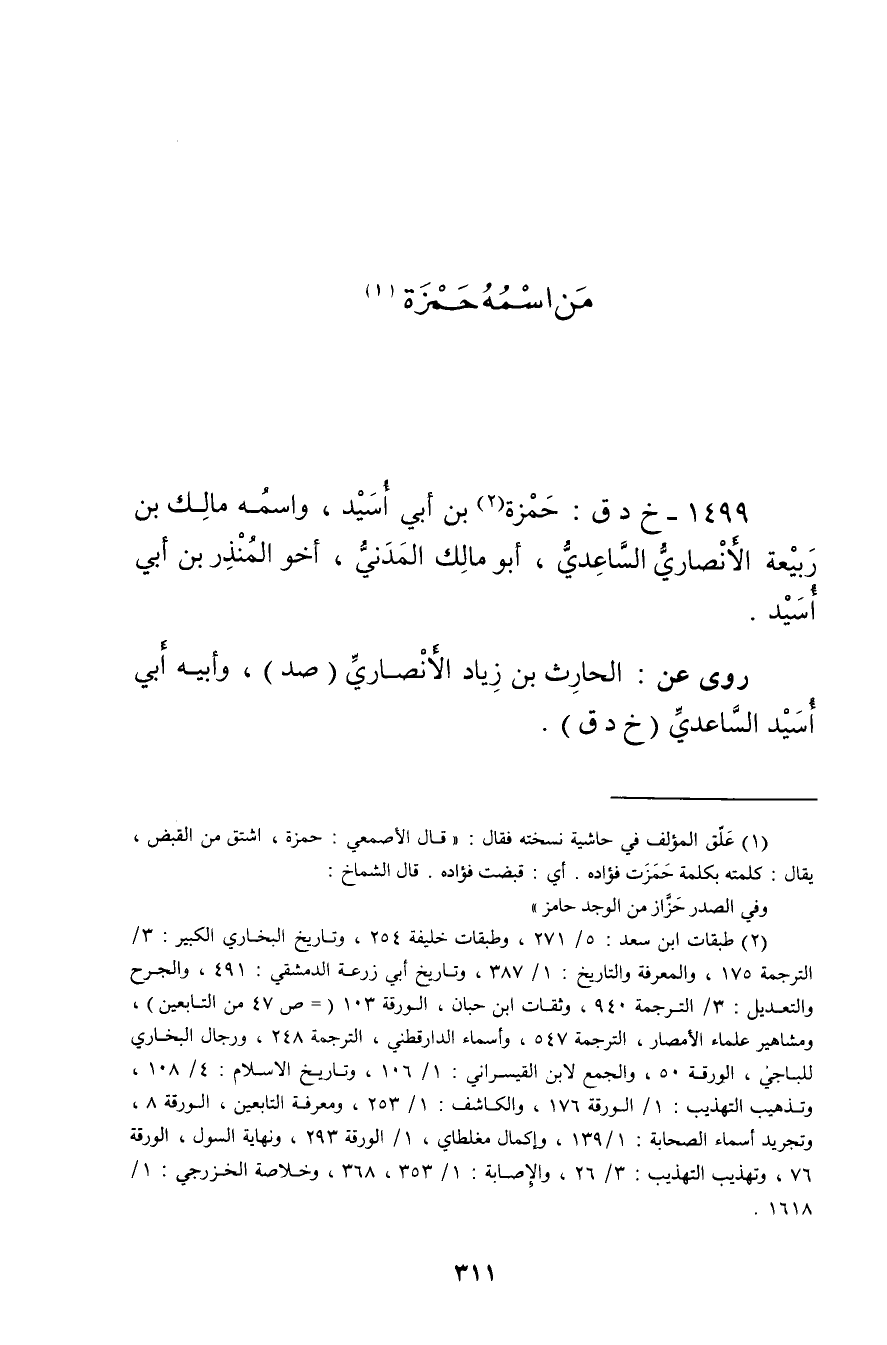 1499 - خ د ق: حمزة بن أَبي أسيد (2) ، واسمه مالك ابن ربيعة الأَنْصارِيّ الساعدي، أَبُو مالك المدني، أخو المنذر بن أَبي أسيد.