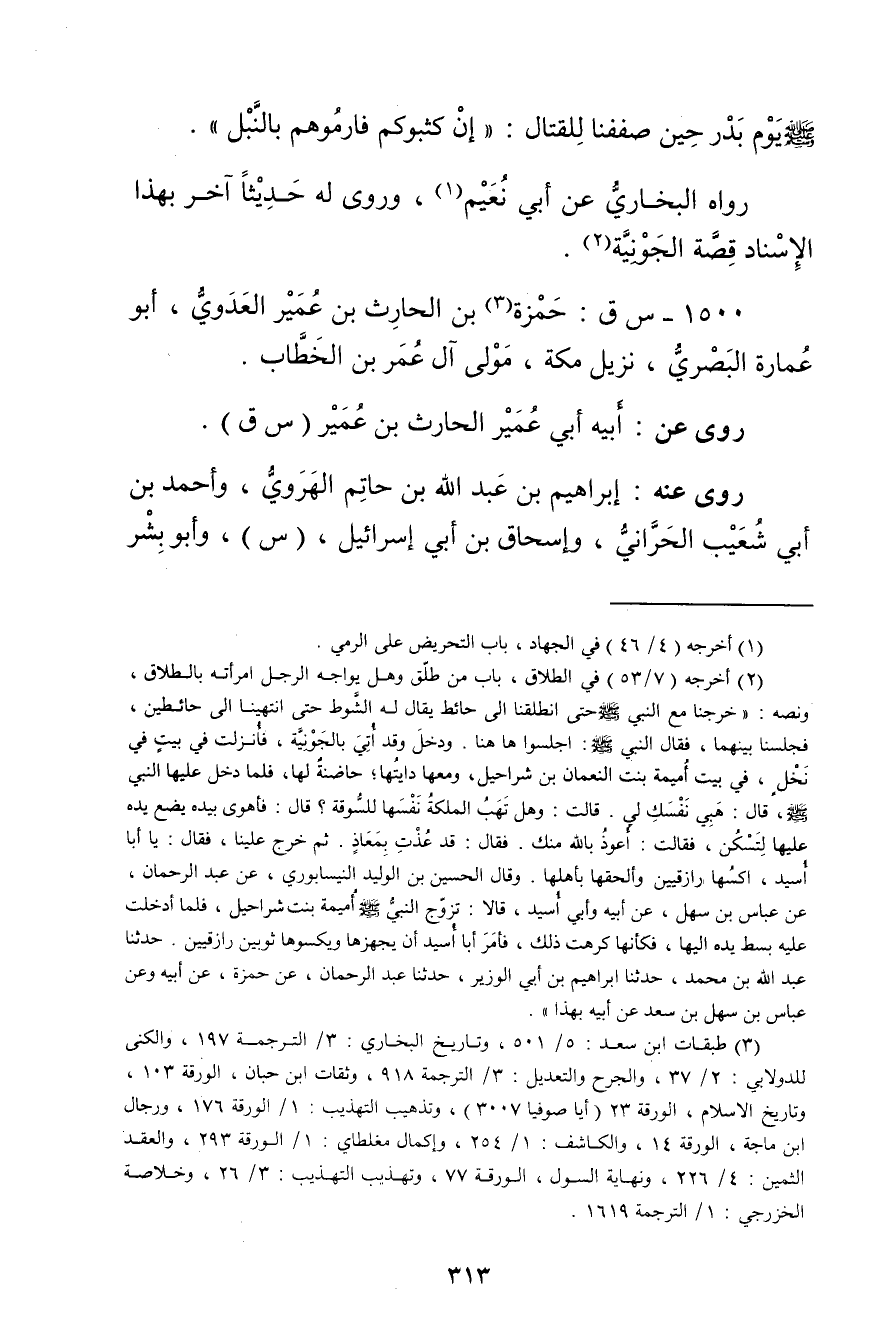 1500 - س ق: حمزة بْن الحارث بْن عُمَير العدوي (3) ، أَبُو عمارة البَصْرِيّ، نزيل مكة، مول آل عُمَر بن الخطاب.