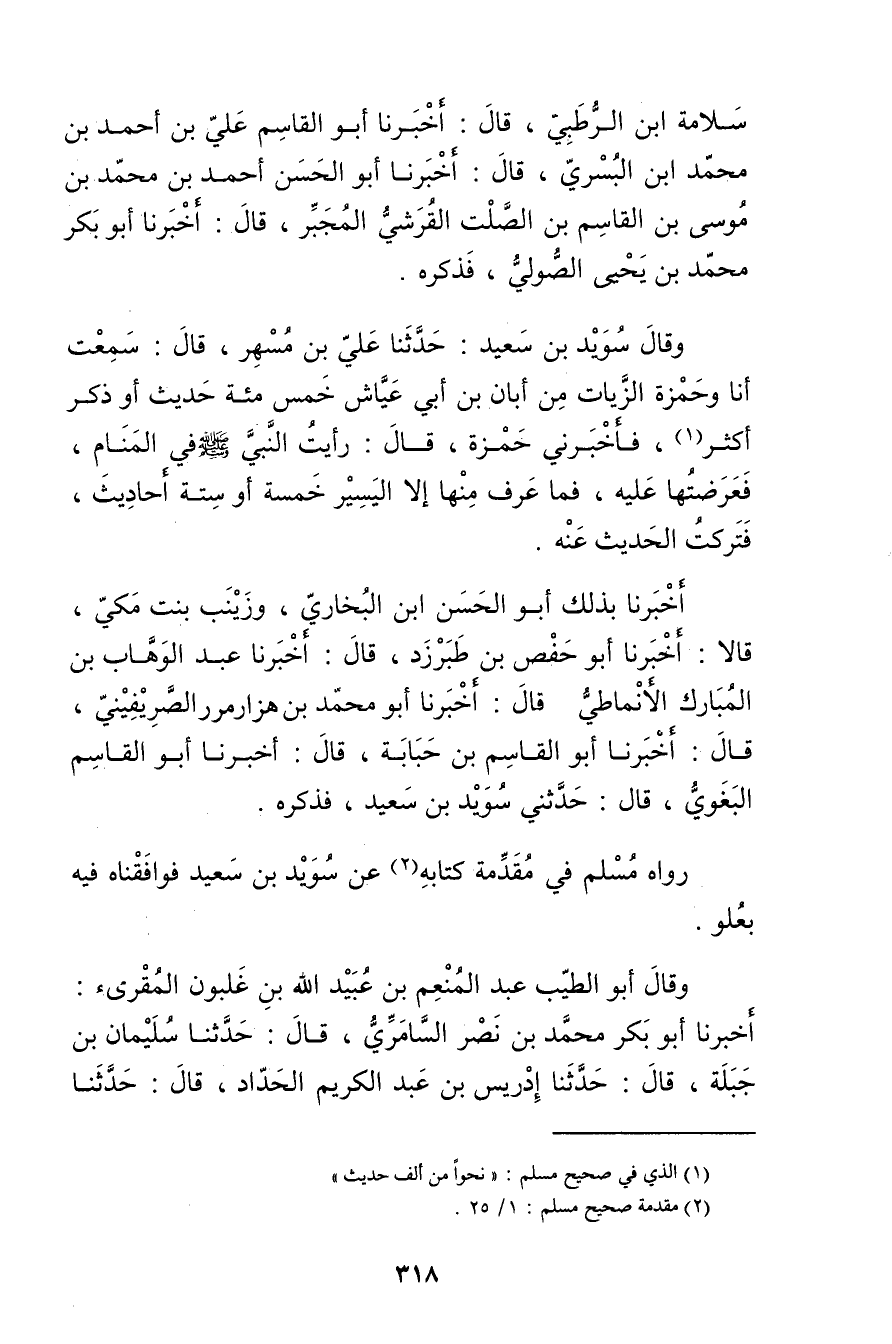 رَوَاهُ مسلم في مقدمة كتابه (2) عن سويد بن سَعِيد فوافقناه بعلو.