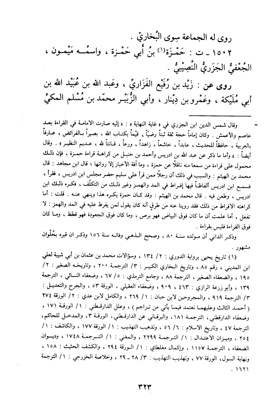 1502 - ت: حمزة بن أَبي حمزة (1) ، واسمه ميمون، الجعفي الجزري النصيبي.