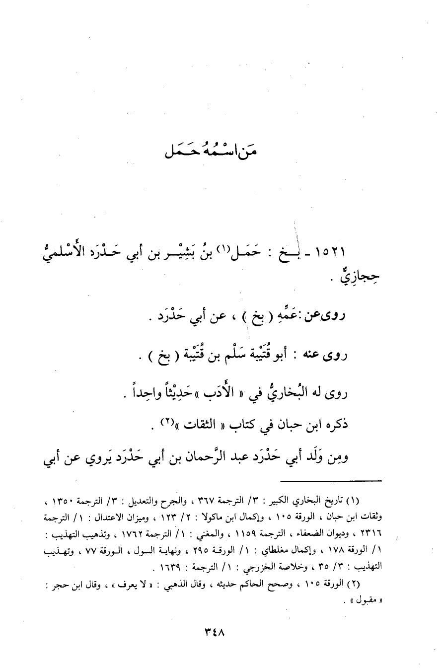 1521 - بخ: حمل بن بشير بن أَبي حدود الأَسلميّ حجازي (1) .