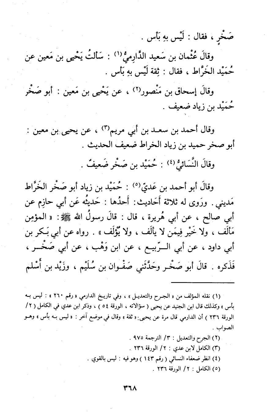 (1) نقله المؤلف من"الجرح والتعديل"، وفي تاريخ الدارمي"رقم 260": ليس به بأس"وكذلك قال ابن الجنيد عن يحيى (سؤالاته، الورقة 54) ، وذكر ابن عدي في الكامل (2 / الورقة 236) أن الدارمي قال مرة عن يحيى: ثقة"وَقَال فِي موضع آخر: ليس به بأس"وهو الصواب.