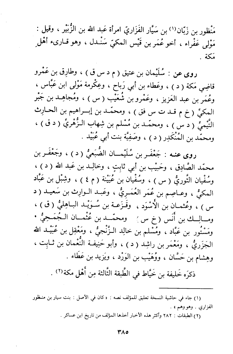 (2) الطبقات: 282 وأكثره هذه الاخبار أخذها المؤلف من تاريخ ابن عساكر.