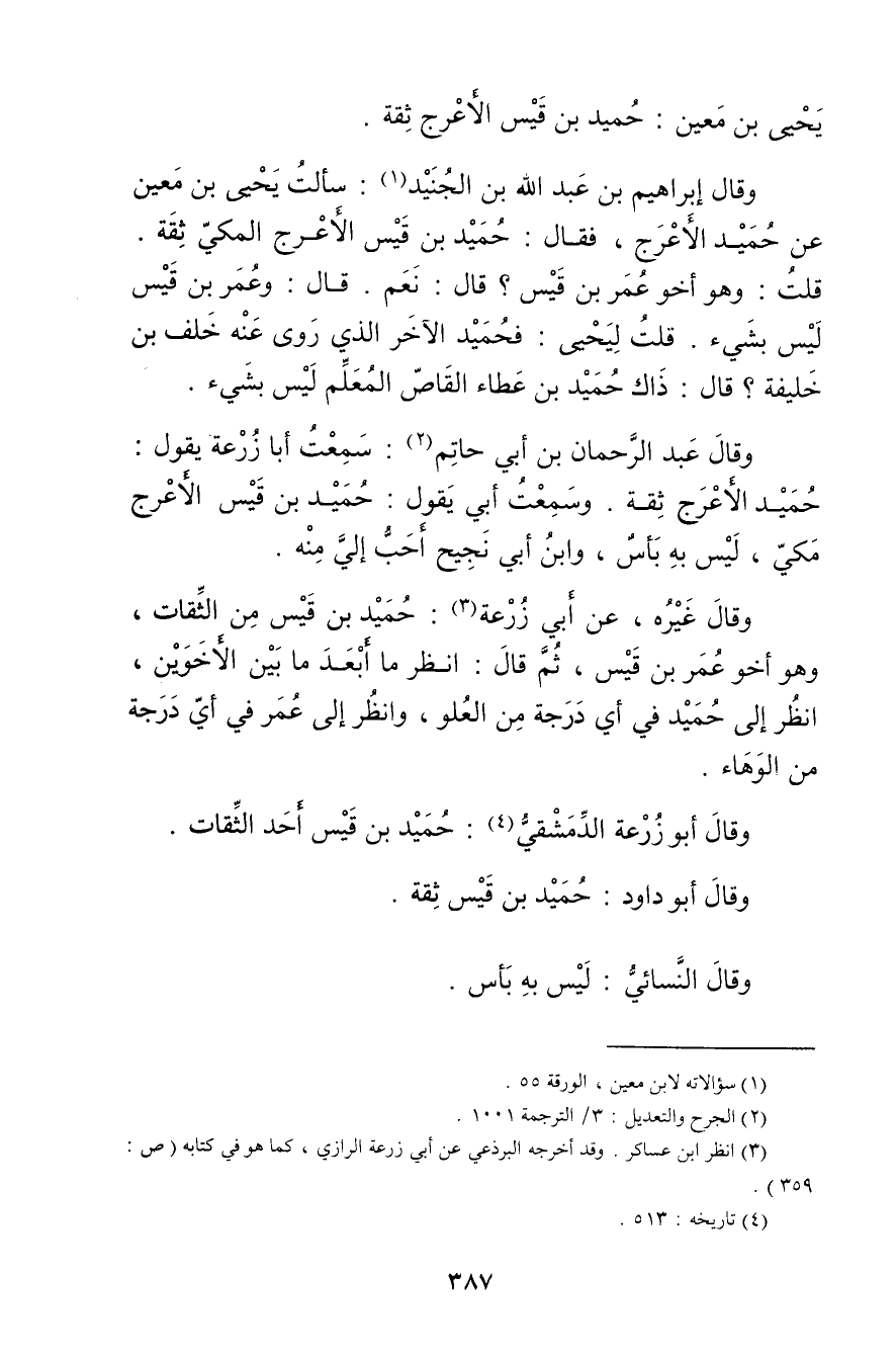 وَقَال أَبُو زُرْعَة الدمشقي (4) : حميد بن قيس أحد الثقات.