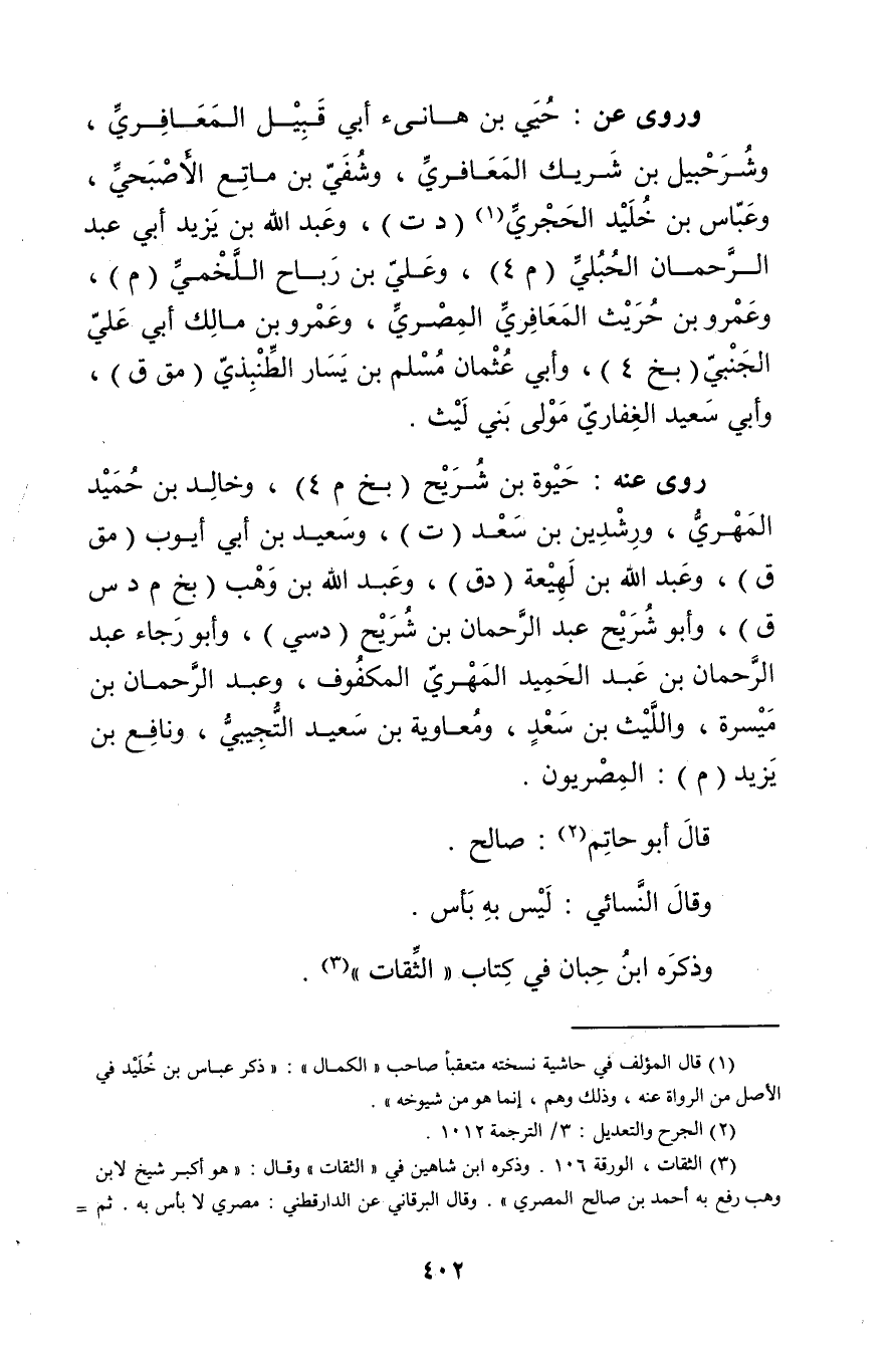 (3) الثقات، الورقة 106. وذكره ابن شاهين في "الثقات" وَقَال: هو أكبر شيخ لابن وهب رفع بن أَحْمَد بْن صَالِح المِصْرِي". وَقَال البرقاني عن الدارقطني: مصري لا بأس به. ثم =