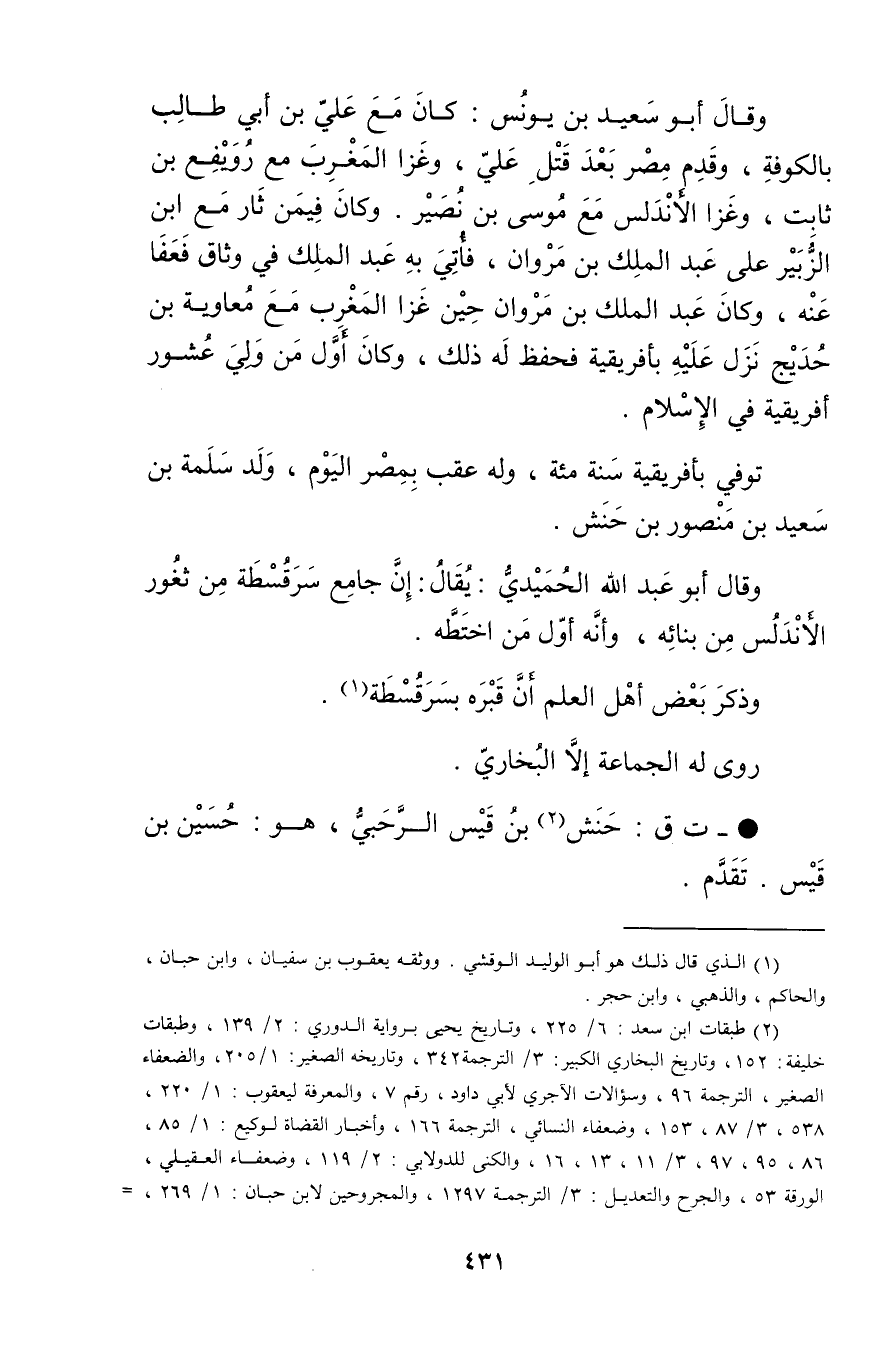 • ت ق: حنش (2) بن قيس الرحبي، هو: حسين بن قيس. تقدم.