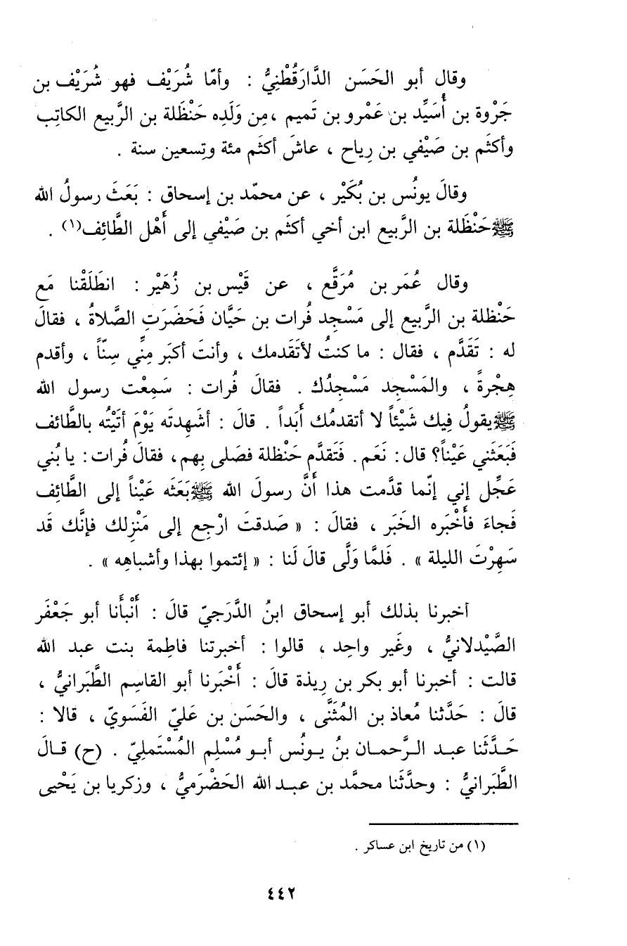 وَقَال يونس بن بكير، عَنْ مُحَمَّدِ بْنِ إِسْحَاقَ: بعث رَسُول اللَّهِ صَلَّى اللَّهُ عليه وسلم حنظلة بن الربيع ابن أخي أكثم بن صيفي إلى أهل الطائف (1) .