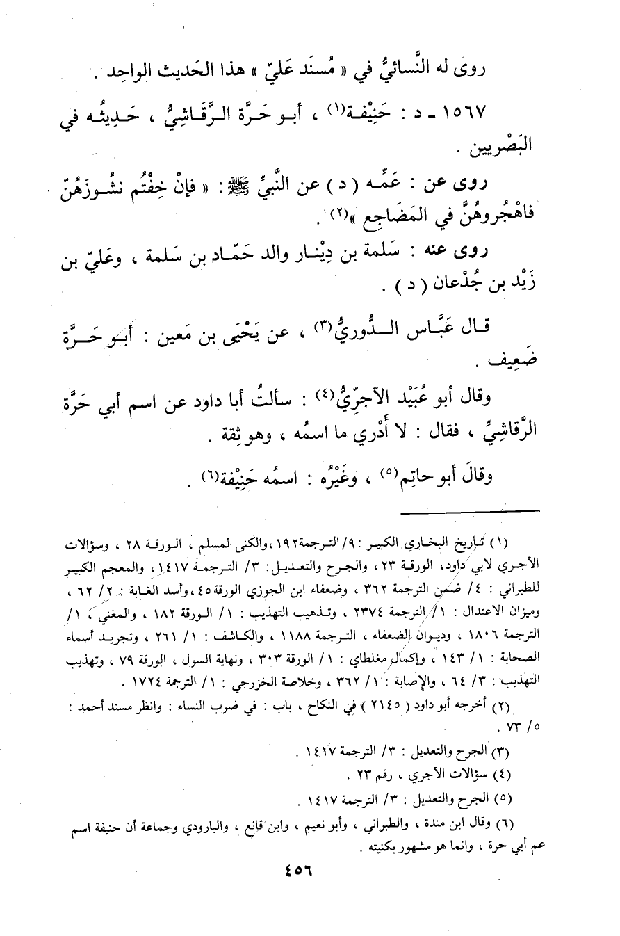 1567 - د: حنيفة (1) ، أَبُو حرة الرقاشي، حديثه في البَصْرِيّين.