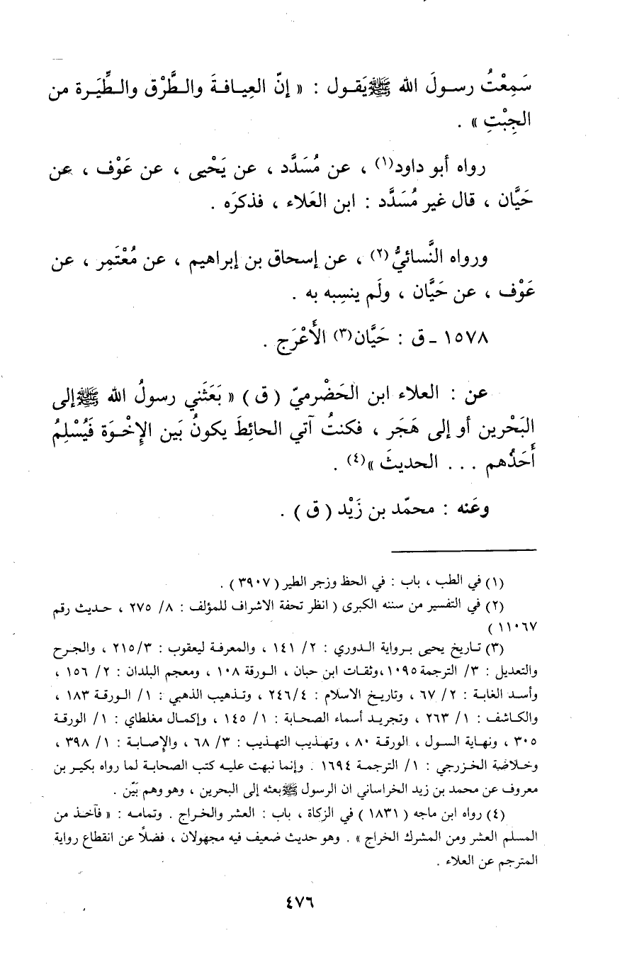 رواه أَبُو داود (1) ، عَنْ مسدد، عَنْ يَحْيَى، عَنْ عَوْفٍ، عَنْ حَيَّانَ، قال غَيْرُ مُسَدَّدٍ: ابْنُ العلاء، فذكره.