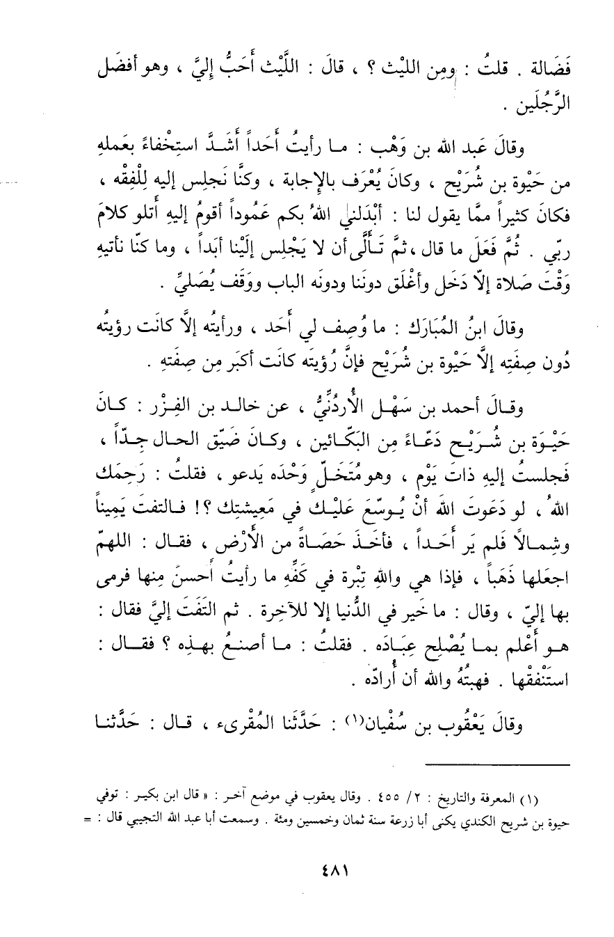 (1) المعرفة والتاريخ: 2 / 455. وَقَال يعقوب في موضع آخر: قال ابن بكير: توفي حيوة بن شريح الكندي يكنى أبا زرعة سنة ثمان وخمسين ومئة. وسمعت أبا عَبد الله التجيبي قال: =