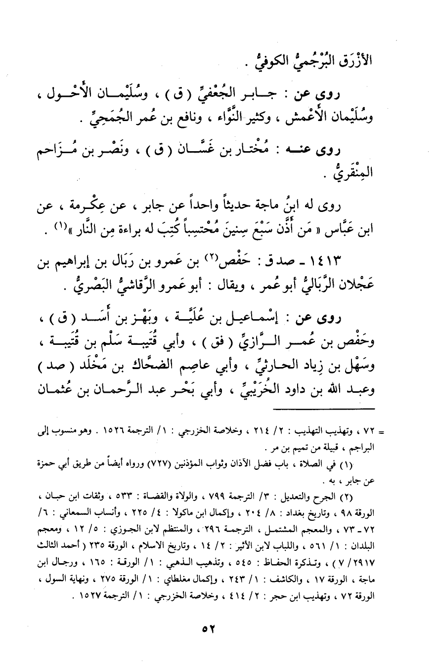 = 72، وتهذيب التهذيب: 2 / 214، وخلاصة الخزرجي: 1 / الترجمة 1526. وهو منسوب إلى البراجم، قبيلة من تميم بن مر.