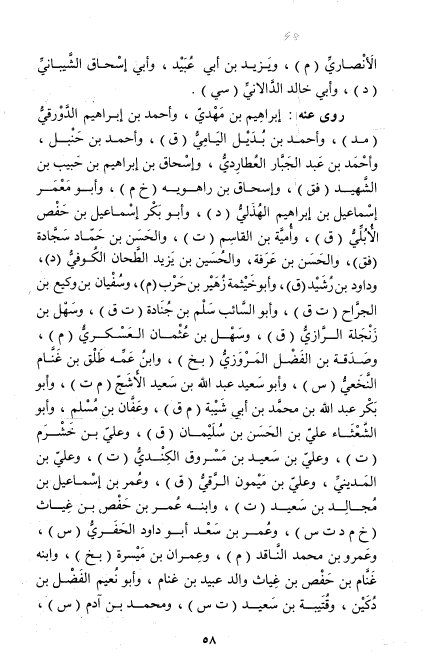 الأَنْصارِيّ (م) ، ويزيد بْن أَبي عُبَيد، وأبي إسحاق الشيباني، (د) ، وأبي خالد الدالاني (سي) .