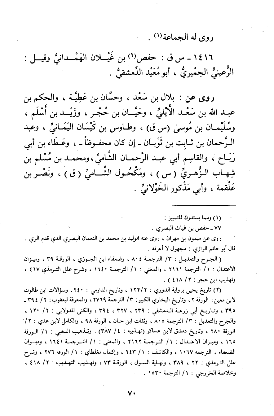 1416 - س ق: حفص بن غيلان الهمداني (2) وقيل: الرعيني الحميري، وأبو معيد الدمشقي.