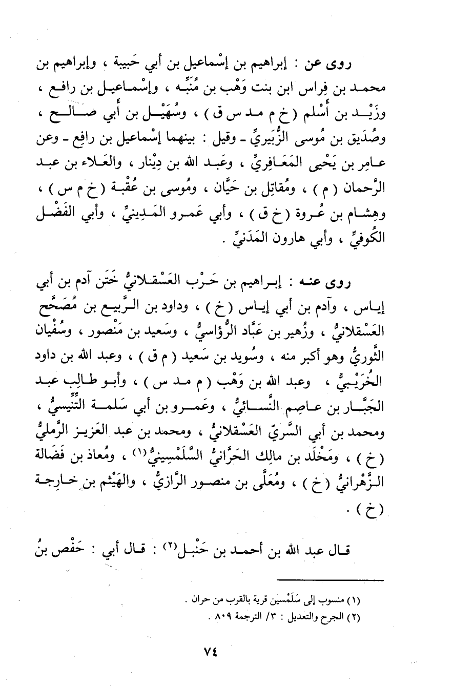 (2) الجرح والتعديل: 3 / الترجمة 809.