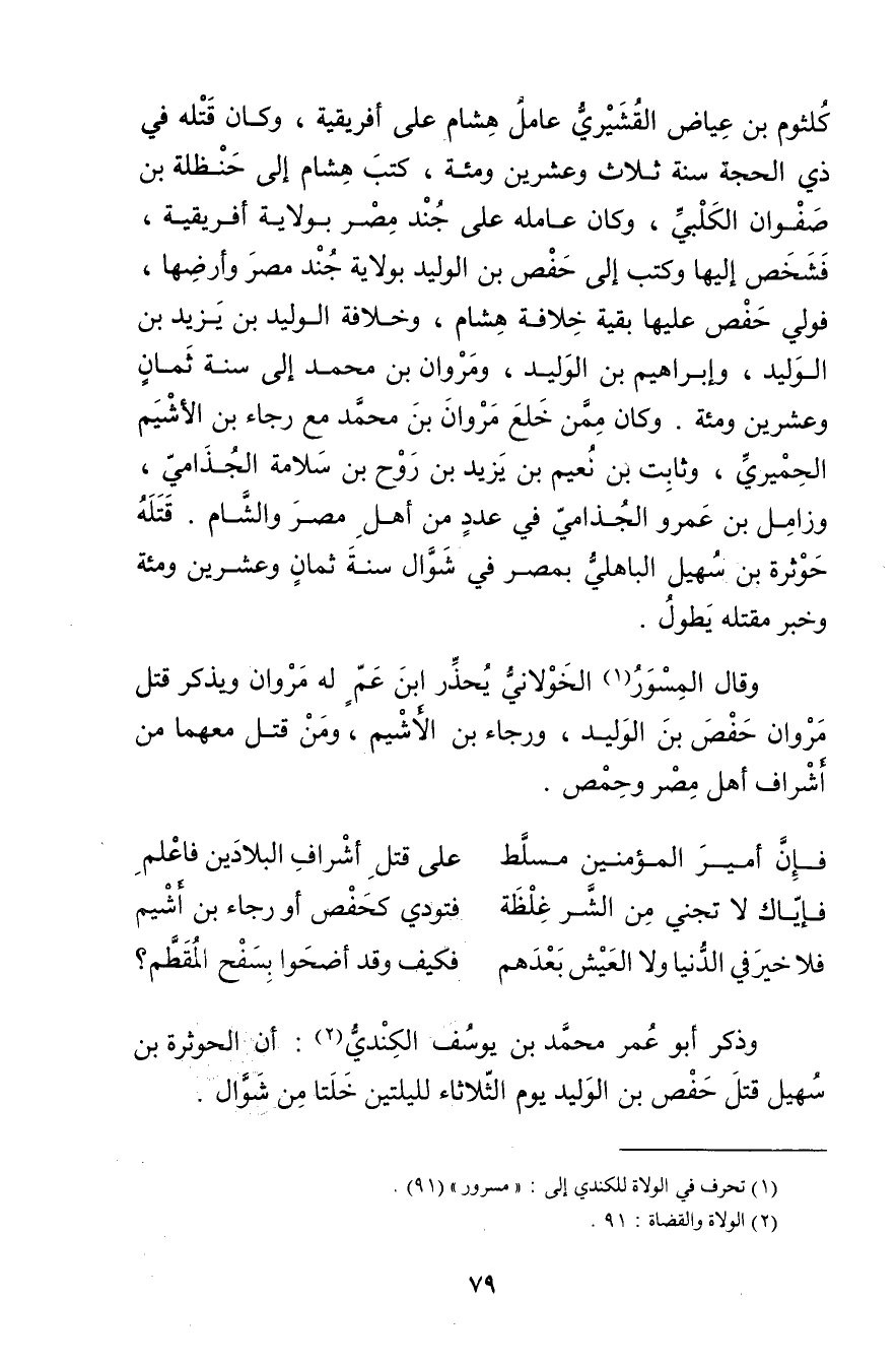 (1) تحرف في الولاة للكندي إلى: مسرور" (91) .